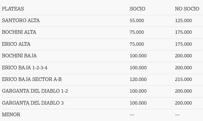 Las plateas para no socios se empezarán a vender el jueves a las 10 hs.