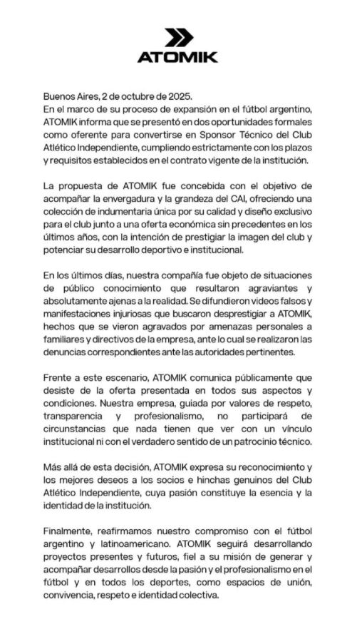 Rápidos de reflejos, los directivos de la marca Atomik, la que hasta la protesta de los hinchas era la que picaba en punta, levantaron el guante.