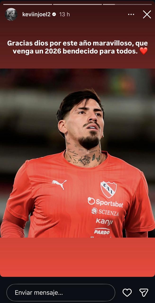 El defensor central subió una foto vistiendo la camiseta de Independiente con la leyenda: "Gracias dios por este año maravilloso, que venga un 2026 bendecido para todos".