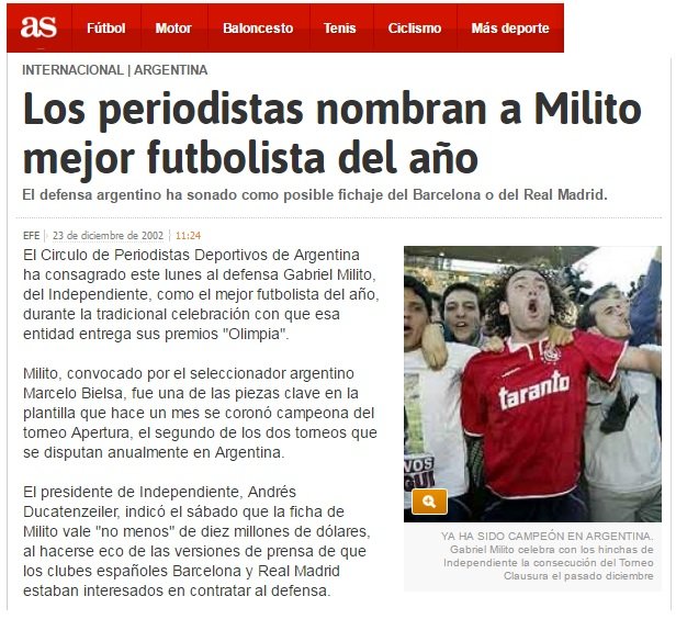 A fin de año fue elegido el mejor futbolista argentino del 2002. Los mejores equipos del mundo querían contarlo para el próximo semestre, y ya lo había anunciado Real Madrid, que era el mejor.