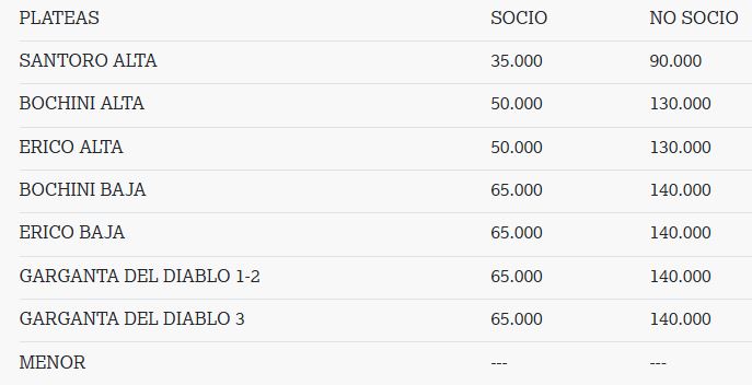 Las plateas para no socios se empezarán a vender el jueves 30/10 a las 10 hs.