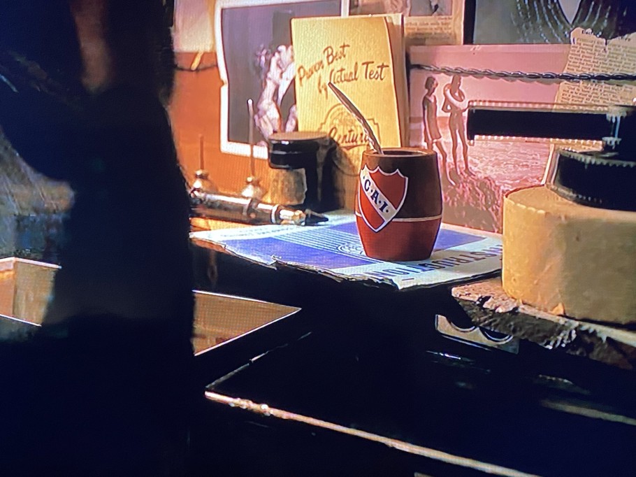 En una de las escenas del primer capítulo puede verse claramente un mate con el escudo del Club Atlético Independiente sobre una mesa de trabajo, un detalle que no pasó desapercibido para los hinchas del Rey de Copas que detectaron al instante el guiño rojo.