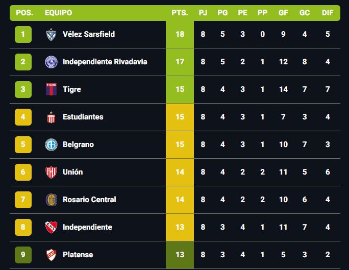 Por su parte, en la tabla anual, estamos en este momento octavos, en posición de Sudamericana.