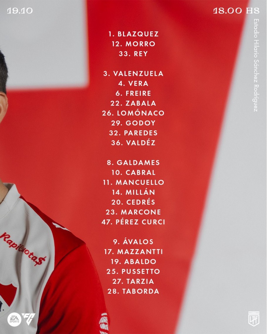 En la lista, se destaca la ausencia de Loyola, lesionado, además del suspendido Montiel.